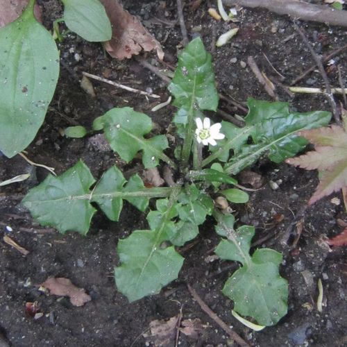 春には、花や葉などの草姿はタンポポの仲間にやや似ています。
